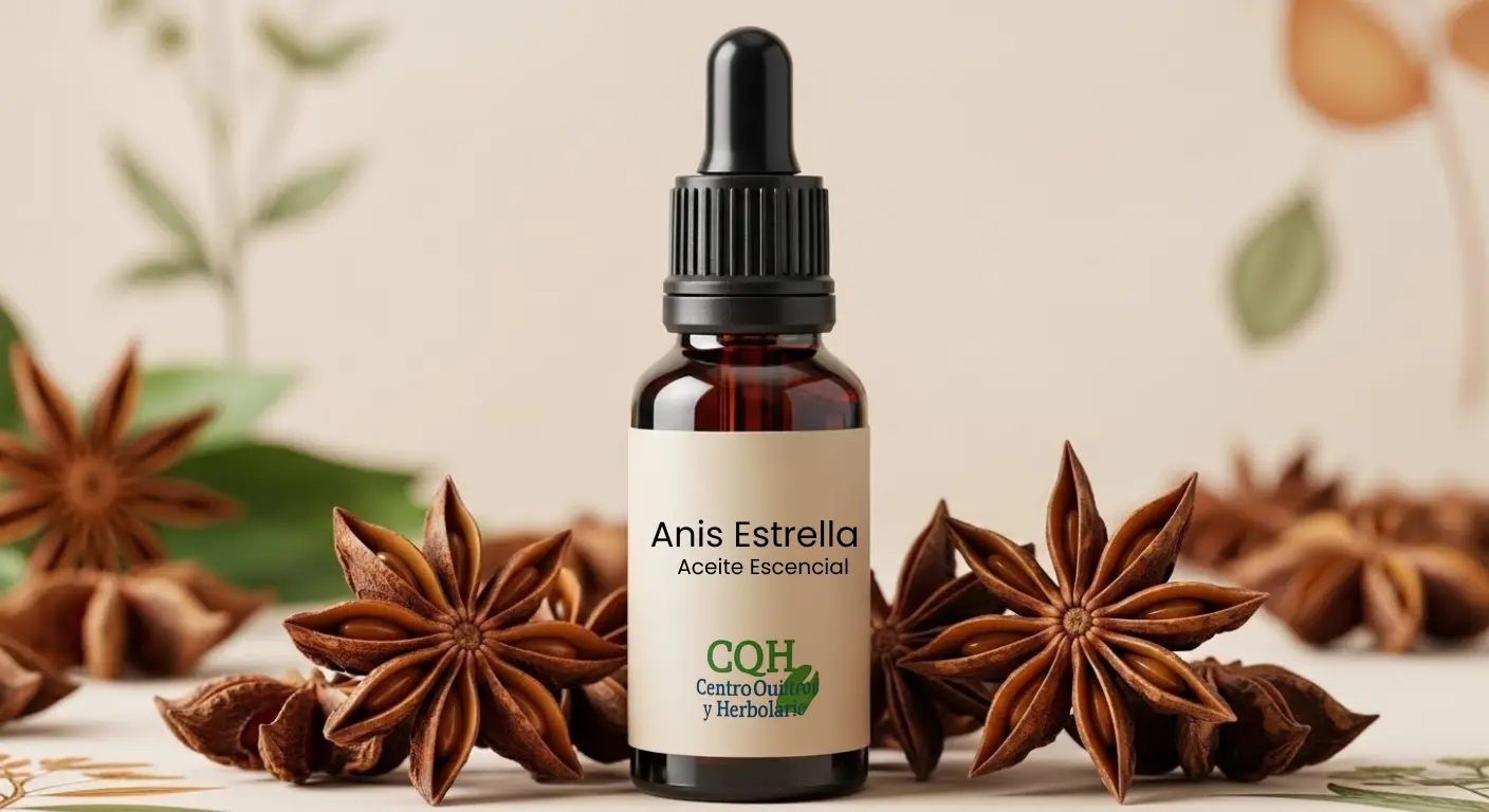 Aceite Esencial de Anís Estrella natural, ideal para aromaterapia, cosmética y productos artesanales por su aroma dulce y especiado.