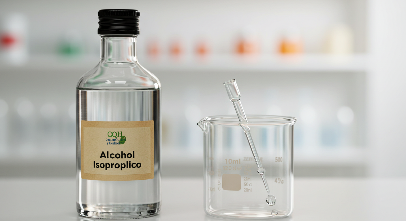 Alcohol isopropílico, desinfectante y solvente común en limpieza y cuidado personal.