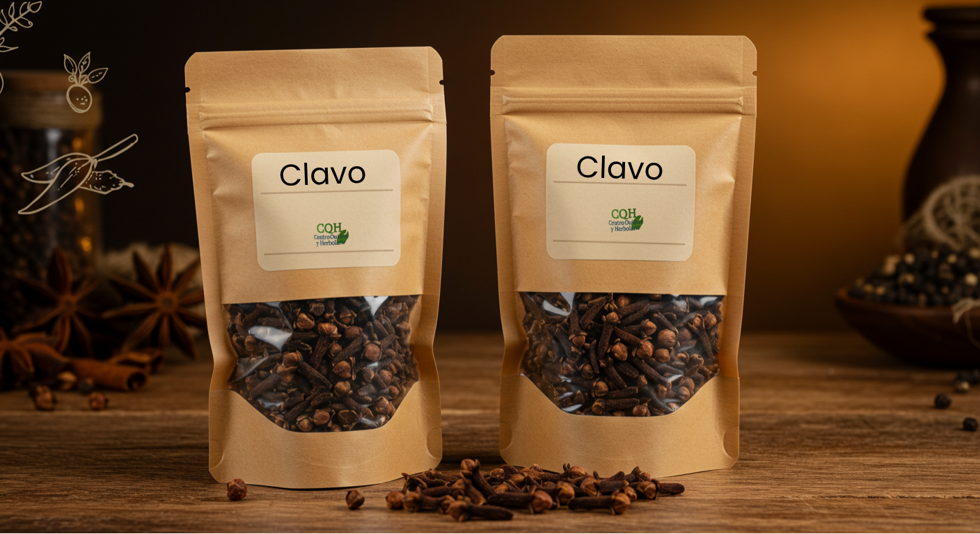 El Clavo Entero de CQH es una especia de aroma intenso y sabor penetrante, utilizada tanto en cocina como en medicina tradicional. Contiene eugenol, un compuesto con potentes efectos analgésicos, antisépticos y carminativos. Se emplea para aliviar dolores dentales, mejorar la digestión, combatir infecciones bucales y preparar infusiones para cólicos o náuseas. También es útil en repelentes naturales, preparados cosméticos y como aromatizante en ambientadores y jabones.